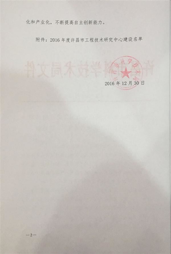 熱烈祝賀我公司成立許昌市工程技術(shù)研究中心