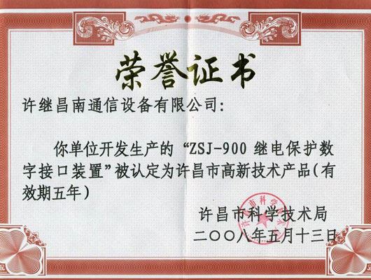 ZSJ901榮譽(yù)證書