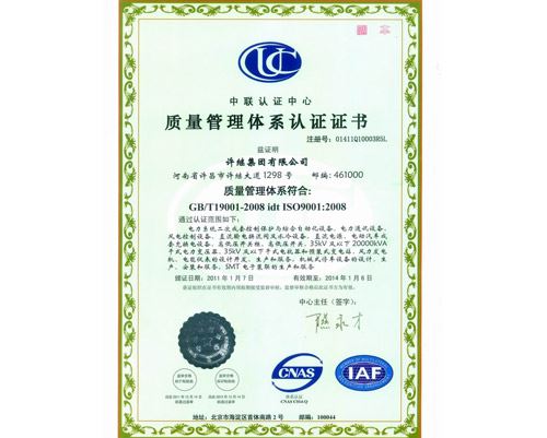 質(zhì)量管理體系認(rèn)證證書