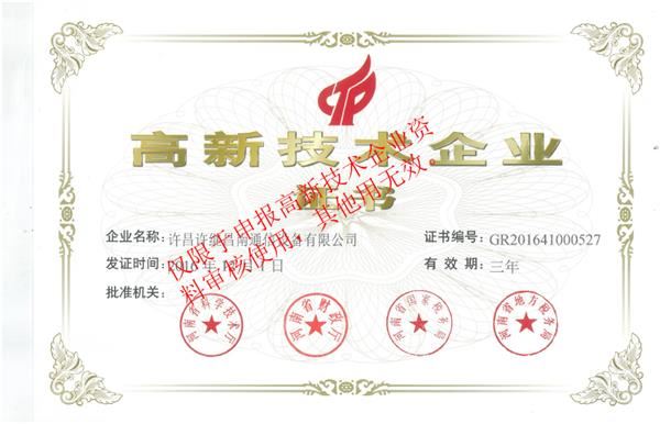 高新技術(shù)企業(yè)證書