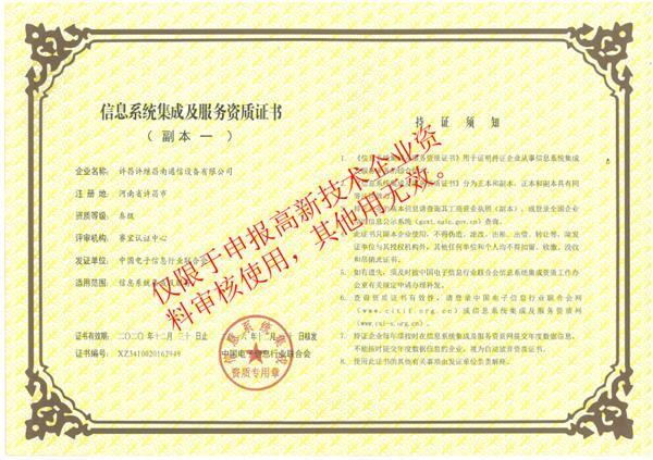 信息系統(tǒng)集成及服務(wù)資質(zhì)證書